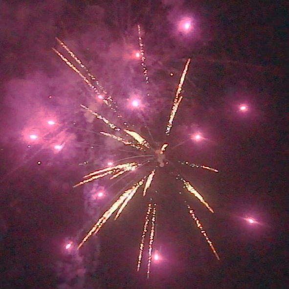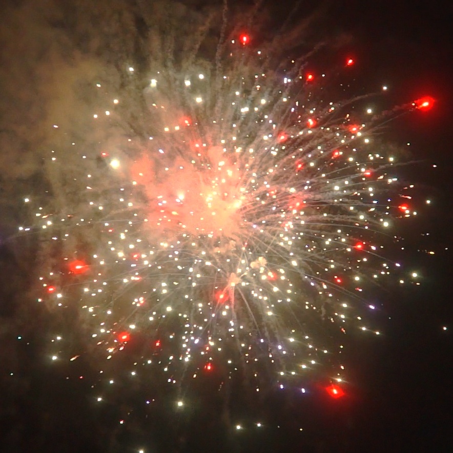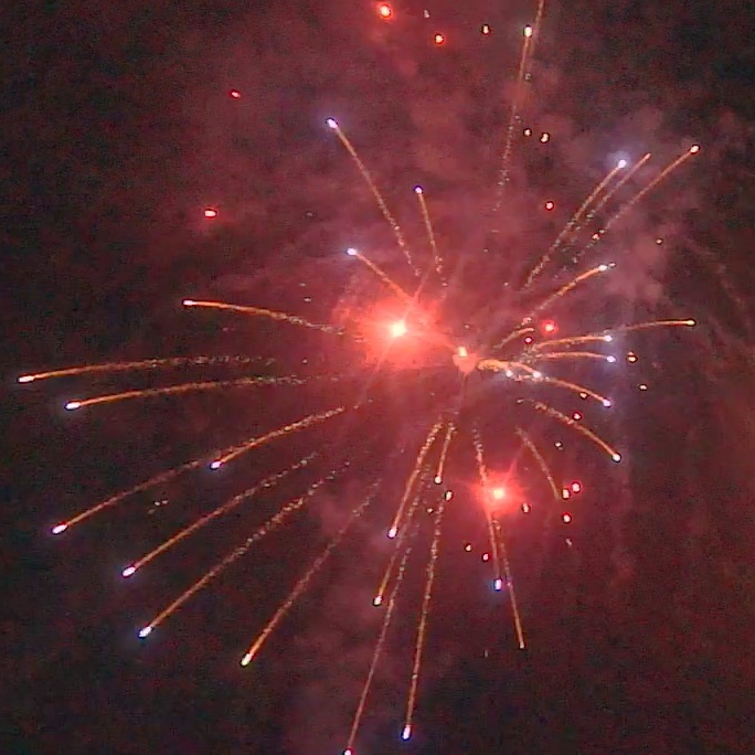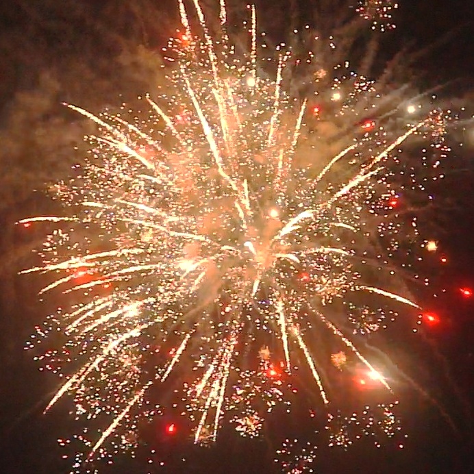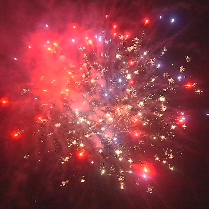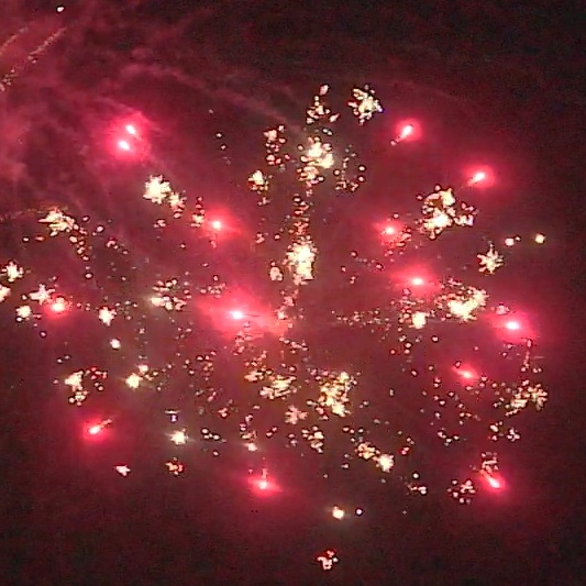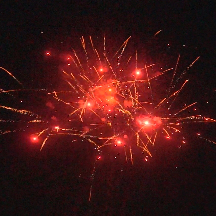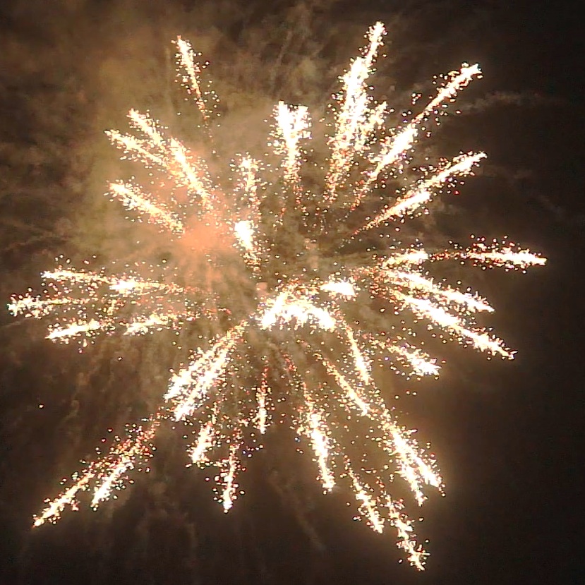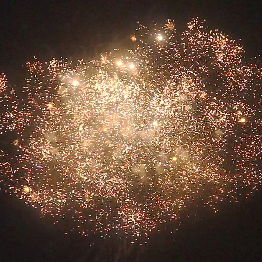 1. Серебряно-золотые ивы; 2. Золотая парча; 3. Золотые ивы и алые звезды; 4. Золотой треск; 5. Цветные пионы; 6. Пальмы и пурпурные пионы; 7. Парча и синие звезды; 8. Разноцветные ивы; 9. Пауки и красные звезды; 10. Парча и красные звезды; 11. Парча с треском; 12. Трещащие пальмы и яркие звезды; 13. Серебряно-золотые ивы; 14. Трещащие пальмы; 15. Пауки и цветные звезды; 16. Цветные мерцающие сферы.