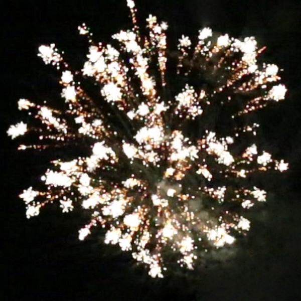 1. Цветные мерцающие пионы; 2. Золотая парча; 3. Золотые пауки; 4. Свистящие змейки; 5. Мерцающая парча; 6. Серебряные змейки; 7. Алые лепестки; 8. Хризантемы с треском: 9. Зеленые пионы и трещащие жемчужины; 10. Зеленые сферы и золотые лепестки; 11. Треск и синие жемчужины; 12. Золотые лепестки и синие звезды; 13. Красные пионы с треском; 14. Золотые лепестки и красные звезды; 15. Ивы и серебряное мерцание; 16. Золотые ивы с треском: 17. Парча и золотой треск; 18. Золотой треск; 19. Золотые лепестки;