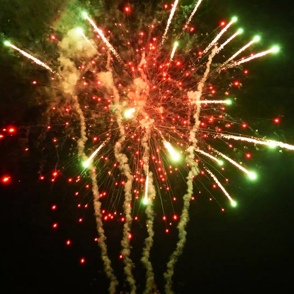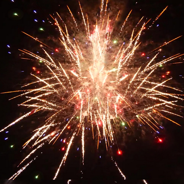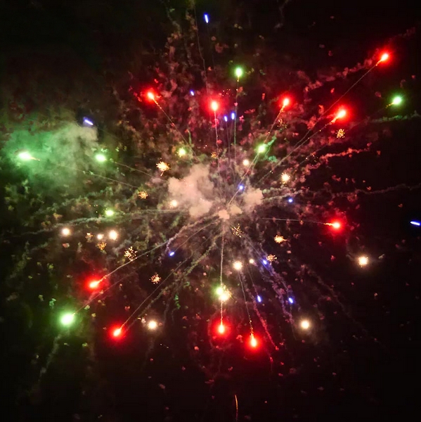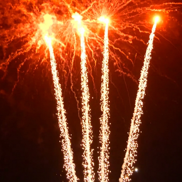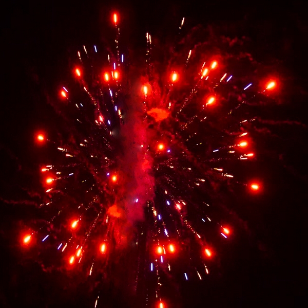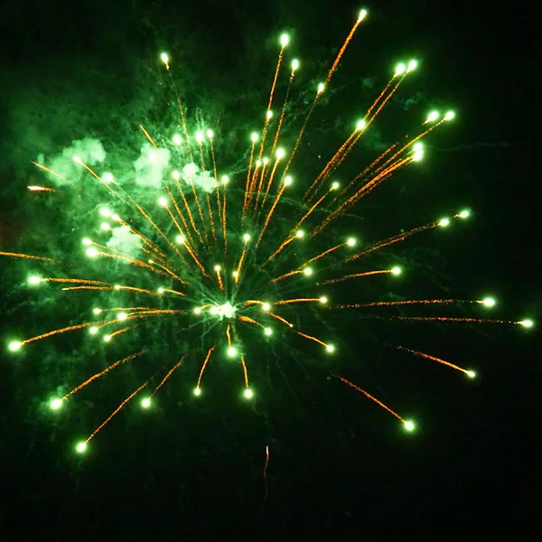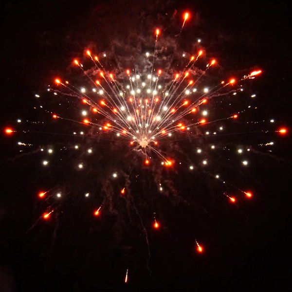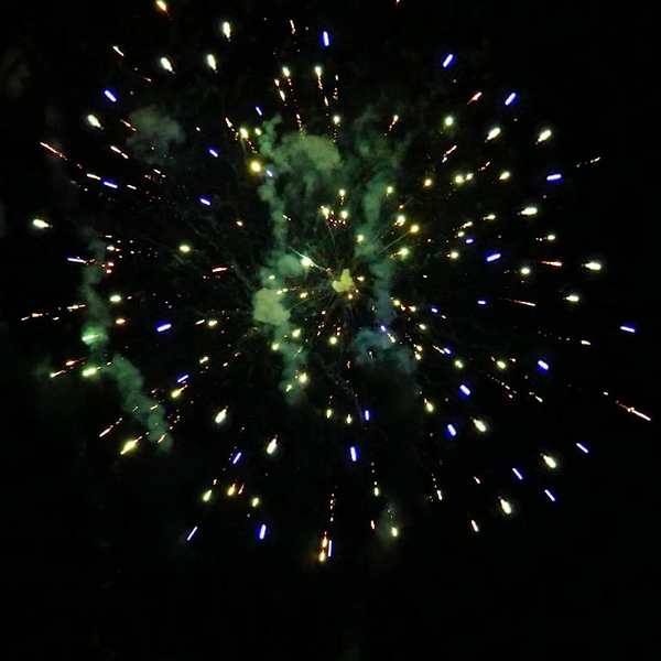 1. Красные кометы и золотой треск; 2. Красные хризантемы с треском; 3. Красно-белые мерцающие пионы; 4. Сине-зеленые мерцающие пионы; 5. Красно-синие пионы; 6. Красные хризантемы; 7. Зеленые хризантемы; 8. Синие хризантемы; 9. Цветные звезды с треском; 10. Разноцветные сферы; 11. Пурпурно - зеленые пионы; 12. Оранжевые кометы и золотой треск; 13. Оранжевые хризантемы с треском; 14. Зеленые хризантемы в красных звездах; 15. Серебряные хризантемы а красных звездах; 16. Цветные трещащие кометы; 17. Серебряно-золотые ивы; 18. Парча и красно-белое мерцание; 19. Золотая парча с треском; 20. Треск и красные звезды; 21. Парча и цветные жемчужины.