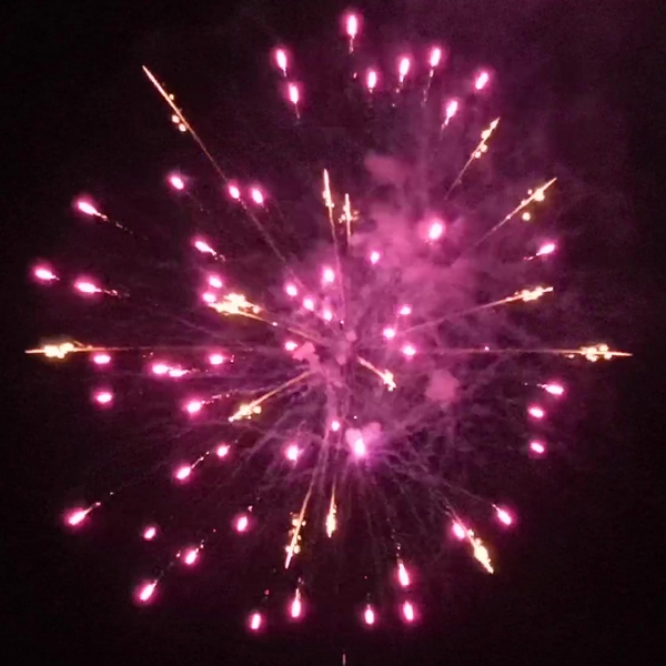 1. Золотое мерцание и синие звезды; 2. Красные мерцающие пальмы; 3. Трещащие пальмы и зеленое мерцание; 4. Золотые ивы и синие звезды; 5. Цветные мерцающие пионы; 6. Золотые пальмы и пурпурные звезды; 7. Золотая парча; 8. Золотые ивы и цветные звезды; 9. Треск и цветные звезды.