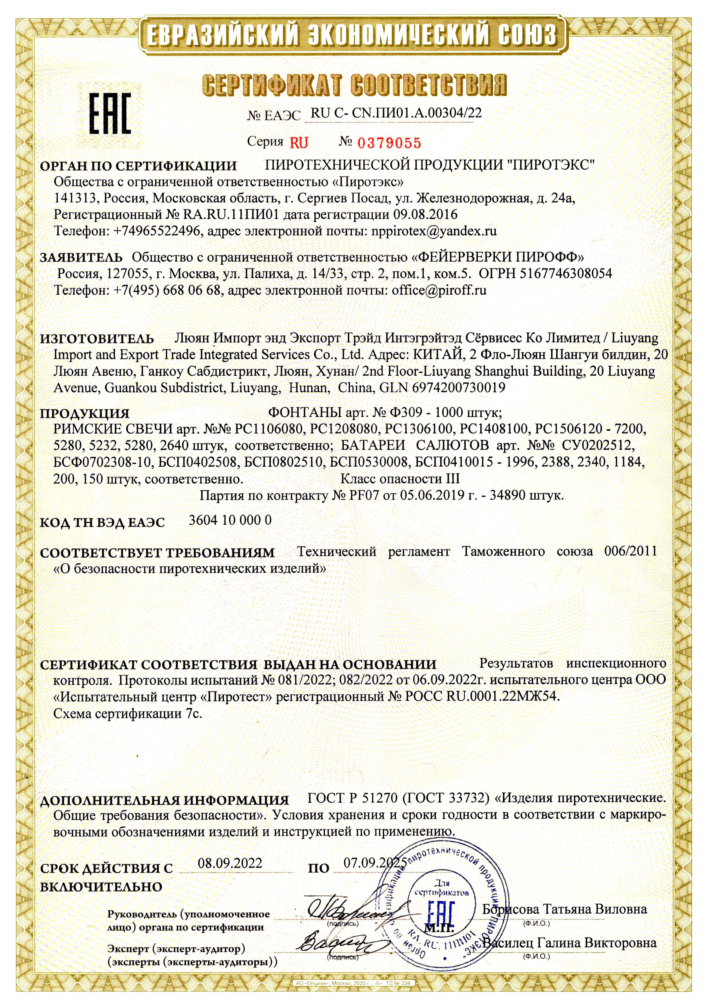 Фейерверк Небесная ладья 1.2*200 Пирофф БСП1420012