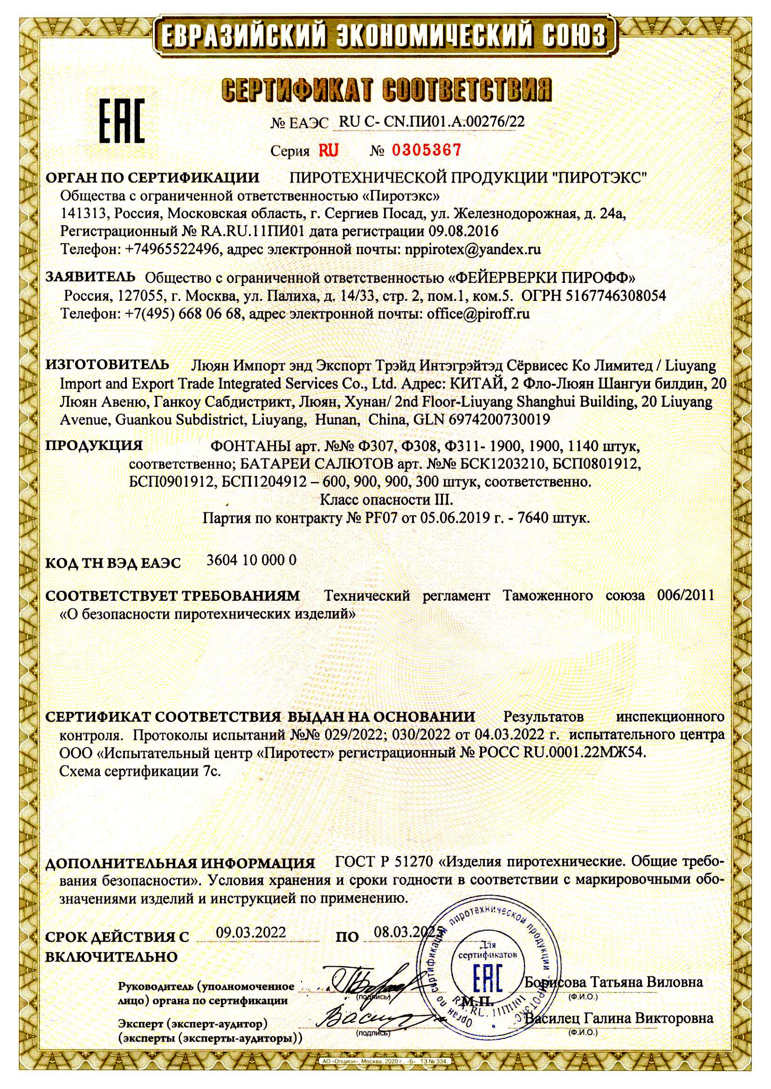 Товарная марка: Пирофф
