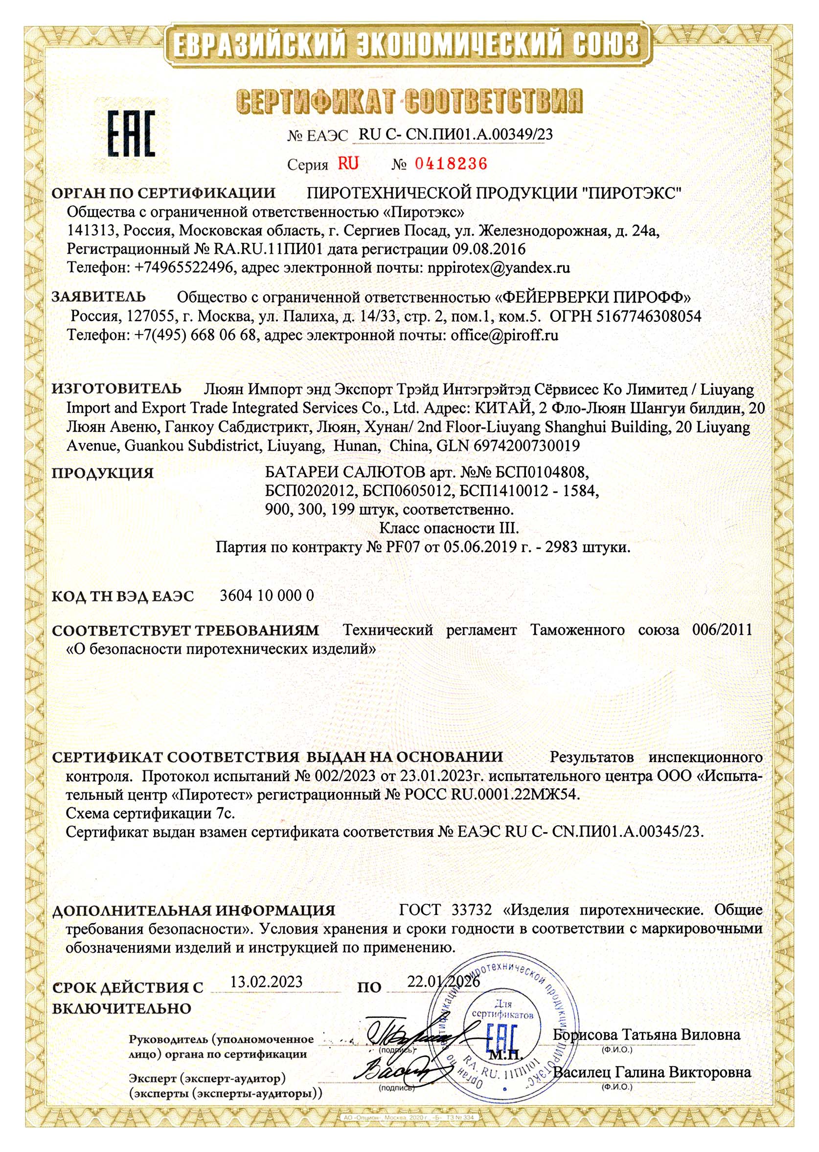 Фейерверк Сибириада 0.8*150 Пирофф БСП0315008