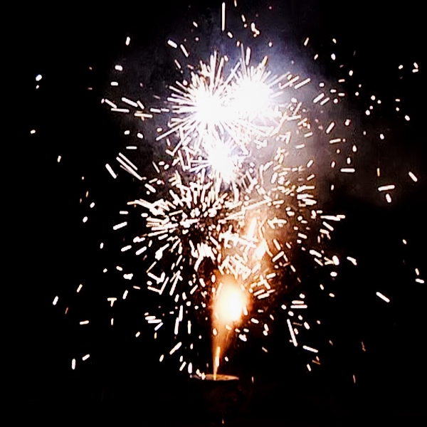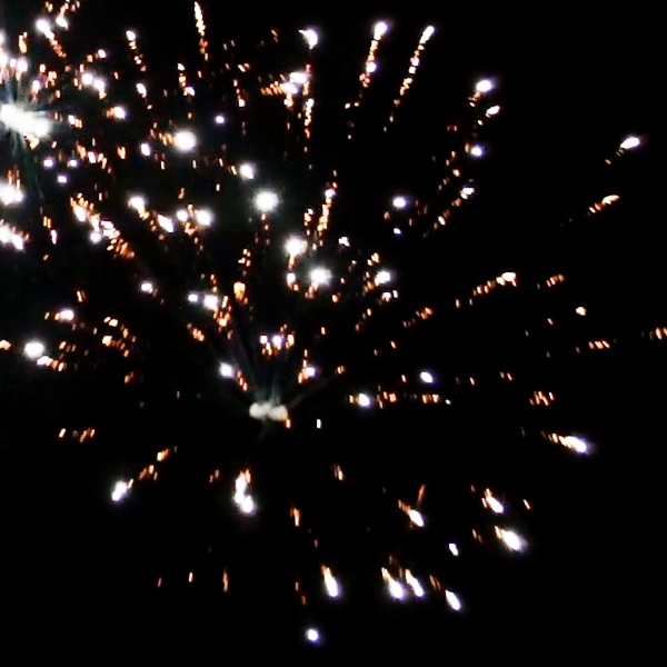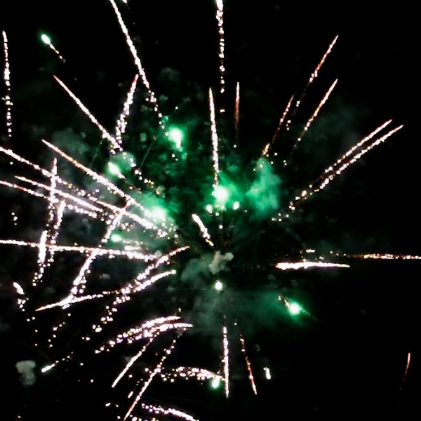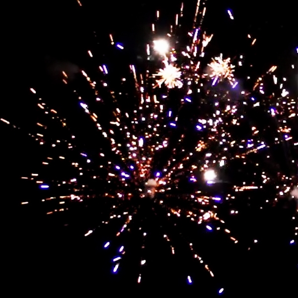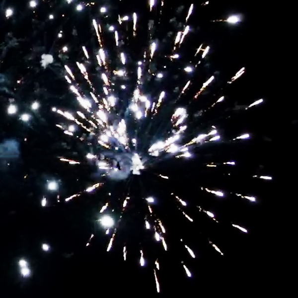 5 эффектов: * золотой треск; * красно-белый мерцающий пион; * зеленые сферы с блеском; * мерцающие облака с пурпурными звездами; * финал - разноцветное трещащее облако.