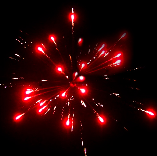 1. Красные пионы; 2. Золотой треск; 3. Цветные звезды с треском; 4. Красно-белый пион; 5. Парча с треском.